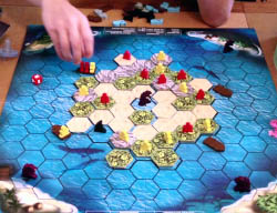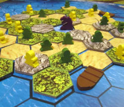 Placement continues until each player has placed their 10 People tokens. When playing with less than four players, some Land tiles will be unoccupied.