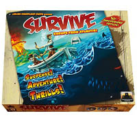If you roll a Shark, move any one of them one or two sea spaces. If the first sea space entered is occupied by one or more Swimmers, the Shark's move ends. Remove all Swimmers from the sea space where the Shark ends its move. A Shark does not affect a Boat in the same sea space.