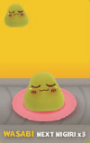 If you choose a squid, salmon or egg nigiri card, and already have a wasabi card in front of you, then this nigiri must be placed on top of the wasabi. This is to show that the nigiri has been dipped in wasabi and has tripled in value!