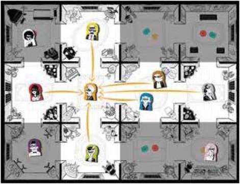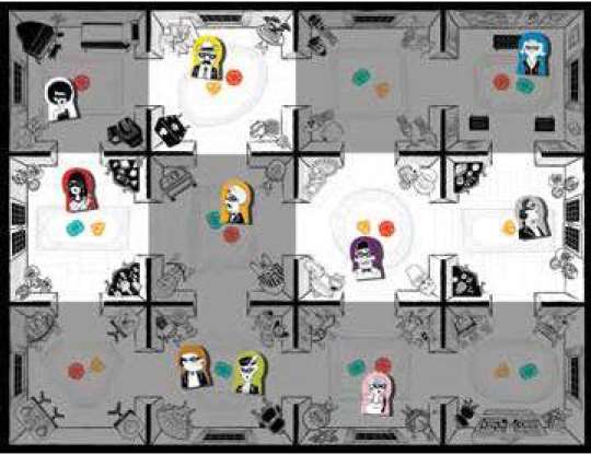 Example: You ask another player if her guest can see Dr. Ashraf Najem, and she slides you the Yes card. The other player's identity must be one of the guests in the highlighted rooms because those characters can all see Dr. Najem.