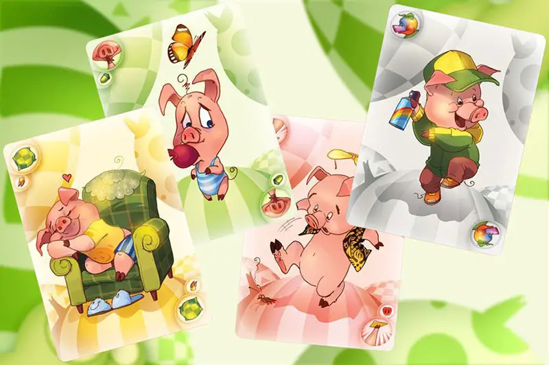 If the player that goes before you plays the Snoring Pig or Greedy-Piggy card, you can play the same card (not necessarily of the same color).