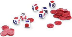 Place the remaining chips and dice in the center of the playing area. (If 2 players, place only 3 dice in the center playing area; the other 3 dice are not used).
