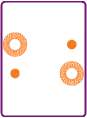 Purple hoops and balls will always be located in the two rows of the center column of the card.