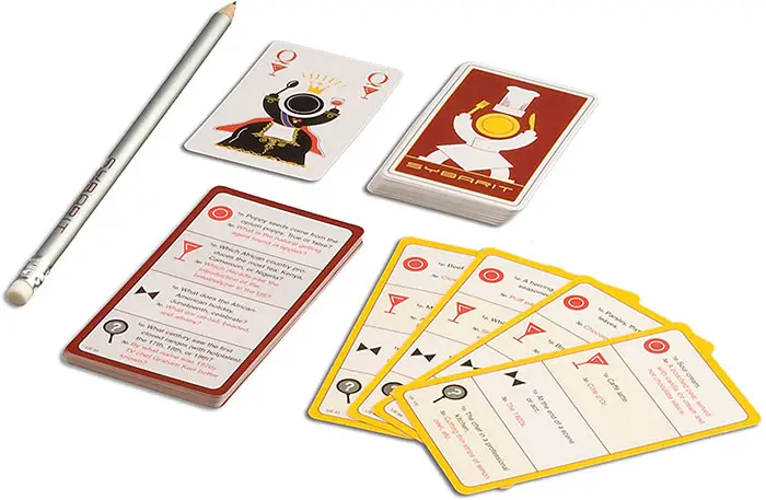 Its suit determines the category, and you must decide whether you want to go for one or three points. Have another player take a Question Card and read you the corresponding question.