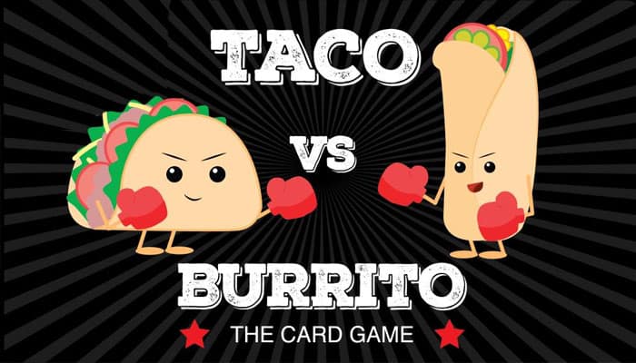 Taco vs. Burito is a deliciously unpredictable card game where players compete to create the weirdest, wildest meal.