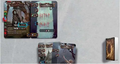 Ability. The text part of the card containing special rules, with various timings. Only Abilities that are visible (and not covered by other cards in the Sequence) are considered active. Passive cards (see below) are never covered, so their Abilities remain in play throughout the En- counter.
