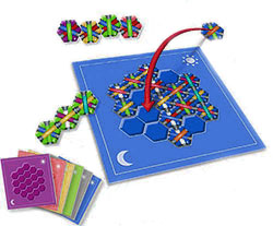 Before playing for the first time, carefully push out the hexagonal tiles from the punched boards.
