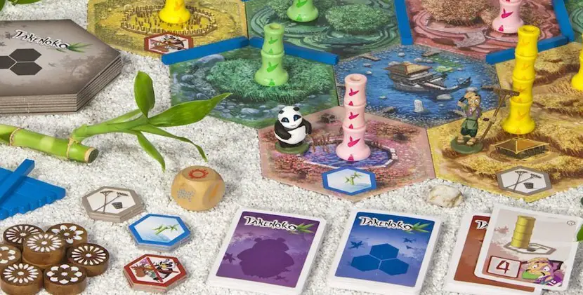 Place the special "pond tile" at the center of the playing surface. Place the gardener and the panda figurines on this plot. Mix the remaining Land Plot tiles to form a draw pile, face down.