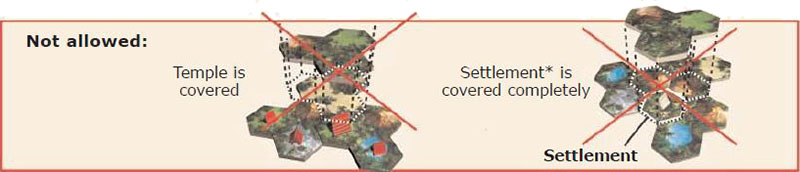 It is not allowed to cover a Settlement completely (i.e. at least one building piece of a covered Settlement should remain).