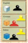 Red receives three orange German chips. Yellow receives three green Irish chips, three German chips, and three Italian chips.
