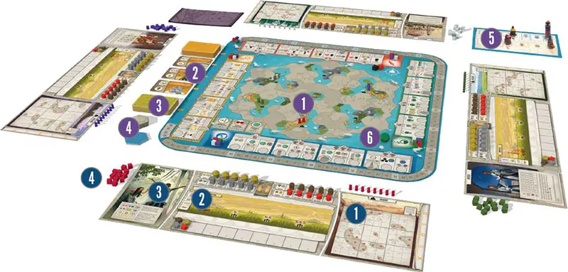 (*) In a 1-3 player game, pair up the capital city mats based on the numbers on the board. Gain a random pair. Choose 1 and discard the other.