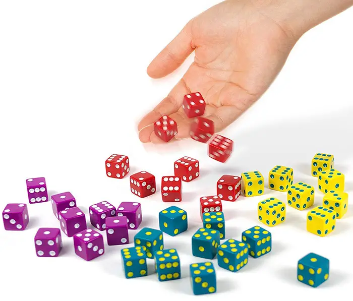 Each player chooses a set of dice. Players hold all 10 dice in their hands.