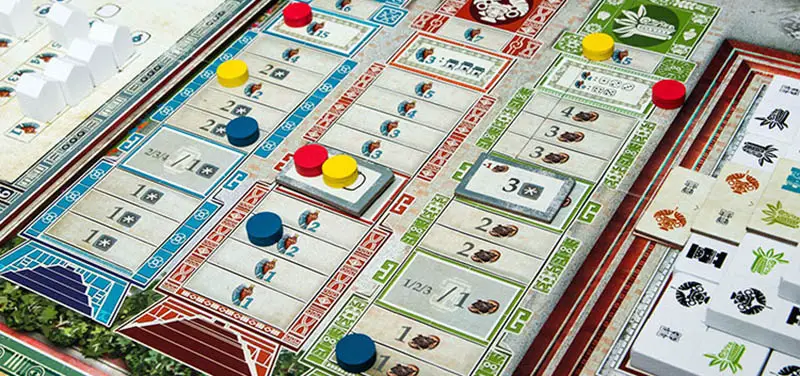 Players play as scions of powerful noble families trying to achieve everlasting glory while planning the construction of Teotihuacan.