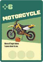 A Motorcycle card will cause all Target tokens on the game board to move 1 space closer to you.