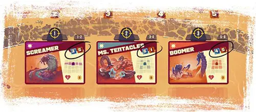When a Worm card is first revealed, it is placed into an open numbered spot in the Terror zone, and the matching Target token is placed onto the board at the starting coordinates listed on the card.