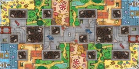 By using two copies of the game, you can play with up to 8 people: • Place two boards together, with the parks of each board being placed side-by-side.