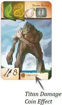 Coin Symbol: An immediate effect takes place as detailed at the bottom of the defeated titan card. These effects are described on page 15.