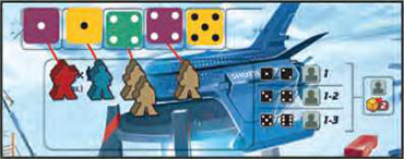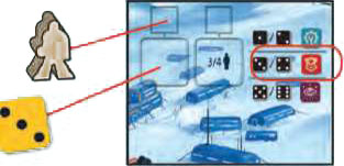 You may send along a colonist (or multiple Pioneers) from the Shelters on your player mat (by spending 1 resource) which will help affect the outcome of the Expedition in the manner described below. When sending colonists on Expeditions, place them alongside your die so that it remains clear who owns them.