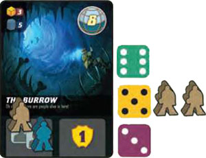 For example, if you wanted to join this Expedition, you would place your die above the die that an earlier player placed at the bottom of the card.
