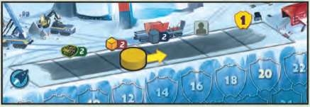 Example: You are on the second space of the Relief Track, and you gain 1; you move to the third space and could choose to gain either 2 Minerals, 2 Energy, or 2 Toolkits.