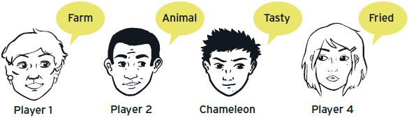 Meanwhile, the Chameleon has to pretend to play along. Since they have no Code Card, it's impossible for them to work out what the secret word is... yet.