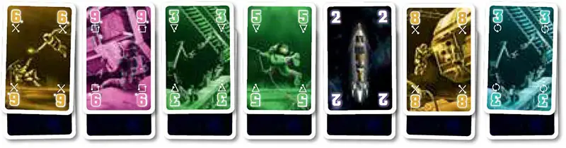 Shuffle the four rocket in with the remaining cards and distribute these face down and evenly among both of the crew members, so that each has 13 cards.