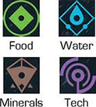 Each faction has two Critical Resources shown on their Faction Mat, If they have the most influence on a Base containing that resource it is worth an extra Control Point during scoring.