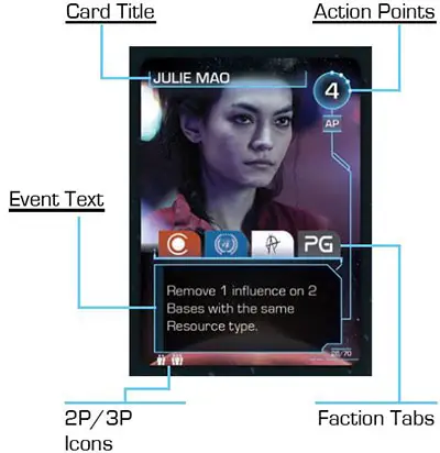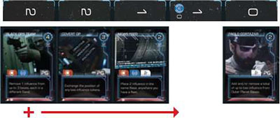 Action cards can be used to move and build fleets and place influence, or for their special Events. If a player selects a Scoring card from the Action Track, players score Control Points for having influence on important Bases in the Solar System.