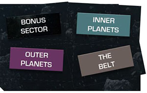 Sector: There are three Sectors on the Map: Inner Planets, Belt, and Outer Planets. During Scoring, one Sector will be chosen to be the Bonus Sector, and will be worth more points.