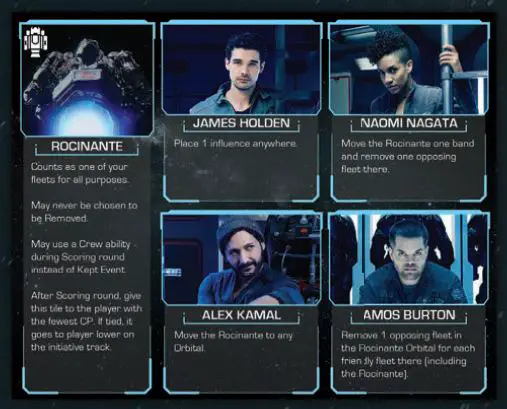 - Amos Burton - Remove 1 opposing fleet in the Rocinante Orbital for each friendly fleet there (including the Rocinante).