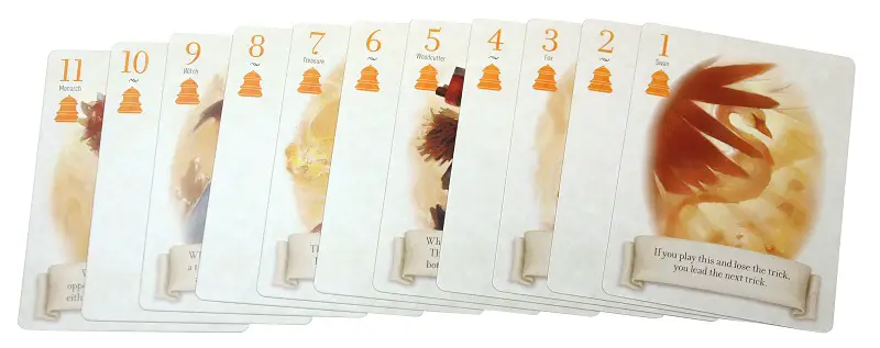 All the cards of odd rank (1, 3, 5, 7, 9, and 11) have special abilities printed on them, which activate when the card is played.