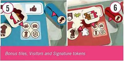 6 Place both of the Artist's Signature tokens next to all the corresponding Artist tiles.