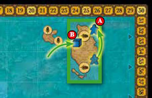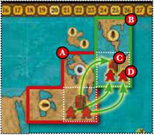 Colonists on the covered spaces go back to their respective capital.
