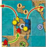 The player chooses one of his standing colonist anywhere on the game board and may moves it on the map to a space that contains one or more colonists from his opponents and/or an opponent's city (capitals, however, can NOT be attacked). The rules for moving are the same as with the Explorer.