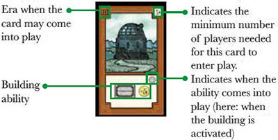 Note: In a 3-player game remove all building cards with '4+' from the game. In a 2-player game remove all building cards with '3+' and '4+' from the game.