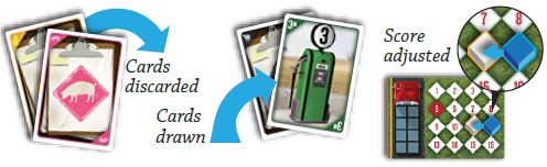 Instead of Loading or Unloading, players may discard as many cards as they choose from their hand to draw new cards (see Refuel). To use this action, players must pay one point and adjust their Score/Cargo cards accordingly.