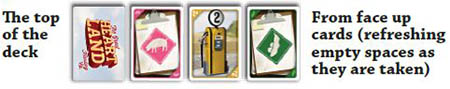 The player now draws cards from the supply until he has five cards in hand. Players may choose to draw from: