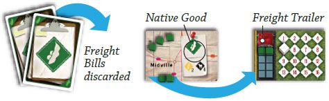 When the Freight Bills match the Native Good of the Location, then the player adds one Cargo Cube of that good to their Freight Trailer for each Freight Bill discarded (see below for when they are not Native). Each Freight Trailer holds up to 8 Cargo Cubes.