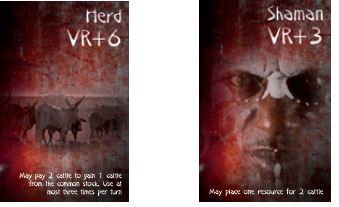 There are 5 specialists: the shaman, the rain ceremony, the herd, the builder, and the nomads. These cards can be taken by players to obtain certain special abilities. Specialists work only when they are paid. The payment is made to the specialist card.