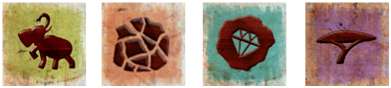 Some areas on the map contain resources: clay, wood, ivory or diamonds. More resources can be added later in the game by the shaman. Separate resource tiles are provided to represent this. The supply of resource tiles is limited: clay (4), wood (6), ivory (3), diamonds (3).
