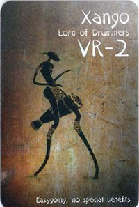 Xango has no particular benefits, but he lowers the VR of the player adoring him by two. In addition, should multiple players reach their VR in the same round, Xango wins any ties.