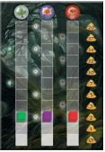 For your first game, each player should position his scoring markers two spaces up from the bottom on each of his tracks. For a standard game, each player should position his scoring markers one space up from the bottom on each of his tracks.