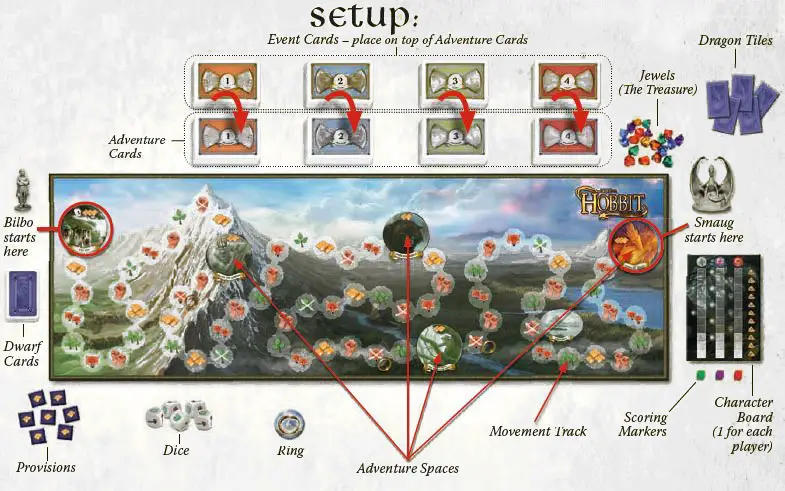 The player who moves him there does not experience any consequences of moving). Remove any remaining Event cards from the stack and return them to the box. After Bilbo enters an Adventure space, he won't move again until the current Adventure is complete. Now it is time to win some treasure!