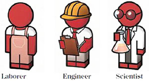 There are three types of Workers: Laborers, Engineers, and Scientists. All three types are used in the same way: They can be placed in Worker Spaces on the Main Board or on Building cards. When a Worker is placed, it may immediately perform a Worker Action.