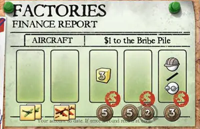 If you place a Worker on a Factory space, remember to add a $1 coin from the General Supply to the Bribe Pile.