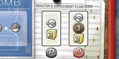 The Reactor space produces Plutonium: You must place a Scientist here and pay two Yellowcake to the General Supply. Raise your token on the Plutonium Track of the Main Board one space. You cannot store more than eight units of Plutonium at a time.