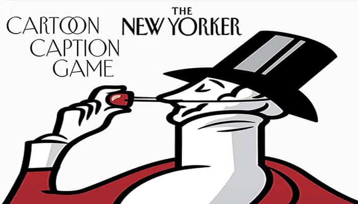 The oldest player will be the first judge. The judge draws the top 3 Cartoon Cards and chooses their favorite. He or she places that one on the easel so that the caption on the bottom is covered. (See image).