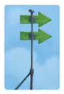 From then on, everyone plays in counterclockwise order (in the direction of the green arrows on the houses' weather- vanes