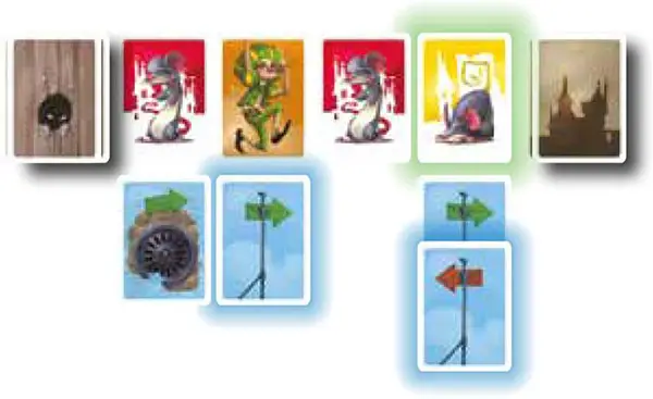 The Action cards allow you to move figurines: either rats or the Pied Piper. Whenever a rat figurine passes a house, that house's Rat tracker moves up 1.