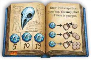 Bonus: If you draw a blue chip from your bag, put it in your pot. You can then take chips out of your bag according to the number shown on the chip.